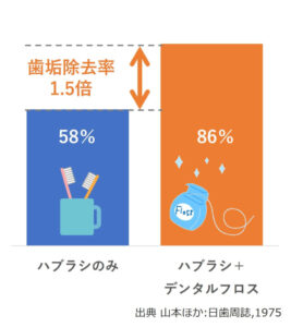 歯と歯の間の汚れは、歯ブラシだけでは半分程度しか取れません。