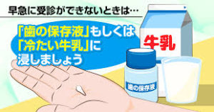 一般家庭でも手に入りやすいため、外傷で歯が脱落したら牛乳に漬けて歯科医院に行きましょうと啓蒙しているわけです。